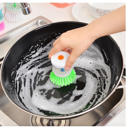 Alat sikat panci inovatif ini dilengkapi dispenser sabun cair. cukup tekan, maka sabun akan keluar otomatis. dengan sikat halus, membantu membersihkan kotoran membandel. jika sikat sudah aus, lepaskan dari tempatnya dan bisa diganti dengan sikat halus yang baru.Ukuran: 5*8 cmWarna: RandomBahan: Pl