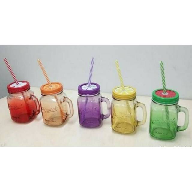 READYGlass Jar Nakami 480ML / Gelas Toples Nakami Warna Warni- Bahan Gelas Tebal Cocok Untuk Cafe- Gelas Sudah Termasuk Tutup dan Sedotan Sesuai Warna- 480ml- Tinggi 13cm - Packing sdh termasuk Dus dan Bubble Warp- Tersedia 5 pilihan warna : Red, Green, Yellow, Orange, PurpleBE SMART BUYERHAPPY SHO