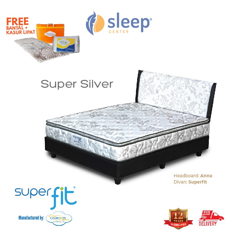 Gratis ongkir hanya untuk wilayah JABODETABEK (wilayah dalam kota)Untuk wilayah diluar JABODETABEK mohon, tanya via chat ke kami.Untuk requst warna di cantumkan pada NOTE saat order, jika tidak maka kami akan kirimkan random.Harga berlaku hanya untuk wilayah JabodetabekTinggi : 25cmFeel : Medium FirmComforta Super Fit Super Silver merupakan Kasur yang berbahan berkualitas yang didesain elegan dengan teknologi couple comfort yang Perpaduannya teknologi pegas yang disusun dan disambung secara pertikal serta dapat menopang yang sangat stabil dan mengurangi goncangan pada saat pasangan tidur anda bergerak. dan dilengkapi pillow top sehingga dapat membuat tidur Anda nyaman.Note;Barang yang sudah dikirim tidak bisa dikembalikan lagiUntuk Pengiriman jabodetabek estimasi pengiriman 3-5 hari kerja.Untuk Pengiriman luar jabodetabek estimasi pengiriman 7-10 hari kerja.MOHON MENCANTUMKAN NOMOR YANG AKTIF,JIKA TIDAK AKAN DI KENAKAN ONGKIR GARANSI PER 10
