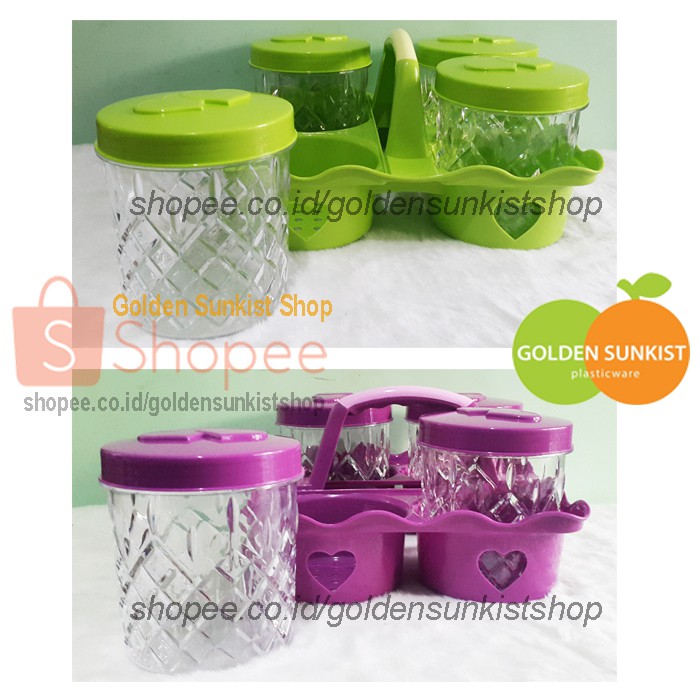 Sale Perlengkapan di Kota Tasikmalaya Toples Kue Set Golden Sinkist Isi 4 Toples Kristal Tbk 1096 Dan Keranjang Rak Toples Rt 9004 dari Golden Sunkist Kab. Sidoarjo