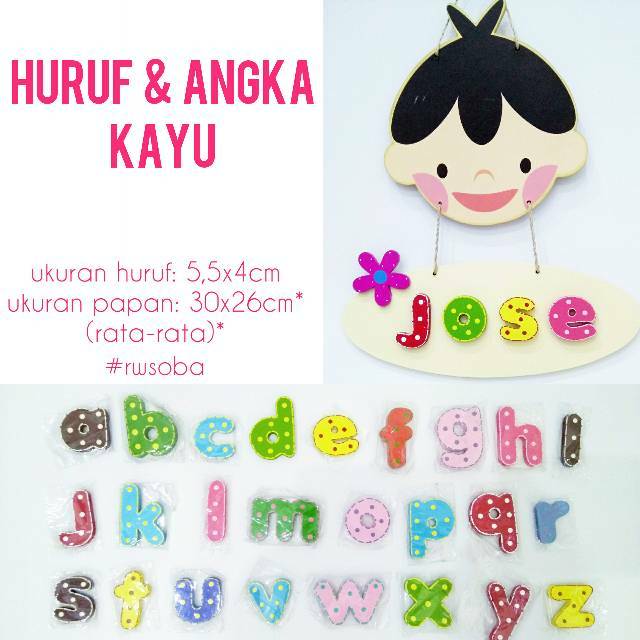 Huruf kayu (a sampai z) /angka (0 sampai 9) karakter kecil. Ber bahan kayu hplDipakai untuk tempelan kulkas/hiasan papan kayu, dll ada berbagai varian warnaHarga: 7000/pcsBahan: kayu HPLVarian warna: randomuntuk ketersediaan warna, stok, dan jenis karakter mohon CHAT terlebih dahulu.Contoh format orderan (tulis di kolom chat) Jenis huruf/angka @ jumlahHuruf A @ 5pcsHuruf B @ 3pcsAngka 3 @ 2pcs dst.....Contoh orderan yang benar ada di salah satu