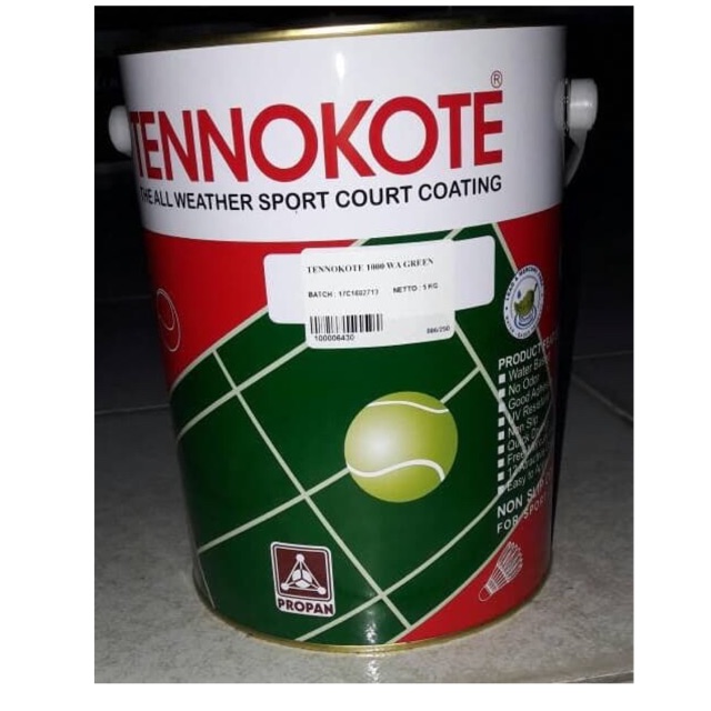 Perhatian : 1. Berat Disesuaikan Dengan Pengiriman Yang Dihitung Bedasarkan Volume2. Pengiriman Dengan Gojek Dapat Disesuaikan Beratnya Harap Chat Message3. Setiap Kelebihan Dalam Ongkos Kirim Nantinya Akan Kami Refund ke Pihak PembeliDeskripsi : - Cat Lapangan- Merek Tennokote - Isi 5 Kg - Untuk Exterior dan Interior Lapangan- Tidak mudah retak- Daya Lekat kuat- Mudah digunakan- Warna sesuai dengan katalog ( Mohon ditanya terlebih dahulu untuk ketersedian stok)=======================================Cat lapangan Tennokote adalah cat khusus lapangan olahraga baik di dalam maupun di luar ruangan no 1 dan terlaris di Indonesia.Cat Tennokote terbuat dari bahan disperse polymer, filler dan pigmen dalam air. Sesudah kering Tennokote TNK - 1000 WA akan membentuk lapisan film yang fleksibel dan memiliki daya rekat yang kuat.Keunggulan Produk : - Antislip dan tidak membuat sepatu tidak cepat aus.- Daya lekat sangat baik pada beton dan aspal- Anti jamur- Tahan sinar matahari dan tidak meleleh- Tahan gesekan- Memperbaiki pemantulan bola sehingga lebih baik- Cepat kering- Warna indah dan tahan lama- Ramah lingkungan( tidak mengandung logam berat)Pengiriman Hanya Menggunakan Go-Send, Max 4 Galon 1 pengirimanJika pembelian tidak menggunakan Go-Send, akan otomatis cancel#tokobangunan #jualbahanbangunan #tokomaterial #tokobangunandepok #jualcatlapanganfutsal #jualmurah #jualmurahbanget #tbsuryajaya #tokobangunanonline #jualcatlapangantenis #jualcatlapanganbadminton #jualcatlapanganbasket #jualcat #jualcattennokote #jualtennokote #jualcatlapangan #jualperalatantembok #jualperalatant