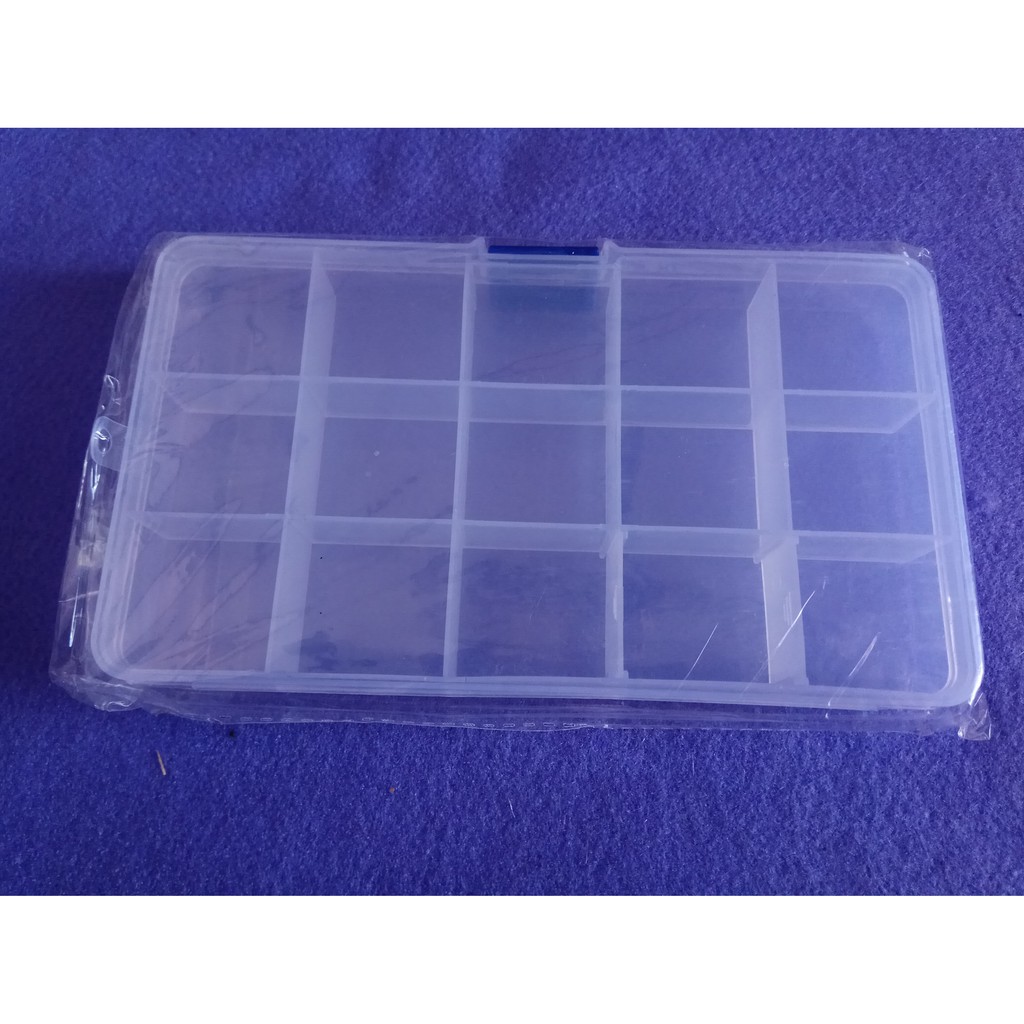 Plastik Box dengan dimensi P. 17.5cm x L. 10cm x T. 2,5cm. Berwarna Putih dengan 15 kompartemen. Cocok untuk menyimpan aksesoris crafter dan lainnya. Pastikan anda menghubungi kami untuk melakukan pengecekan ketersediaan stock barang guna menghindari pengemba
