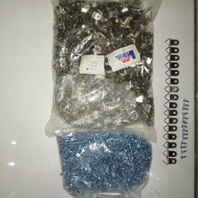 Gantunganisi 10 gross(1440 pcs)panjang 2cmmaksimal untuk frame 17Rbesi pengait dengan plat nya belum terpasang Bautisi 1500 pcspanjang baut 8ml(0,