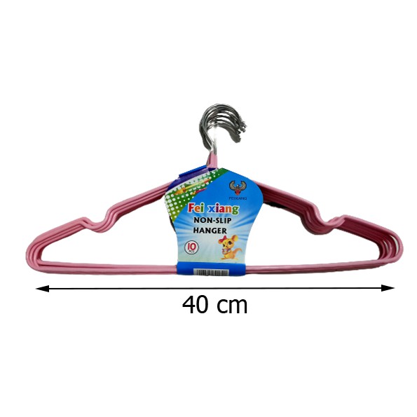 Harga adalah untuk 1 set (isi 10pcs)Hanger Baju dengan lapis coating warna, anti karatwarna pilihan acak ya#hanger#hangerbaju #gantunganbaju#clothh